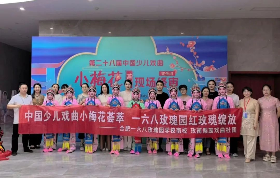 7月25日至8月1日,由中国戏剧家协会、湖北省黄冈市人民政府主办的第28届“中国少儿戏曲小梅花荟萃”决赛在湖北省黄冈市举行。由安徽省徽京剧院推荐、安徽省戏剧家协会选送的合肥市一六八玫瑰园学校南校徽剧折子戏《拾玉镯》选段成功入围业余组集体项目现场终审。