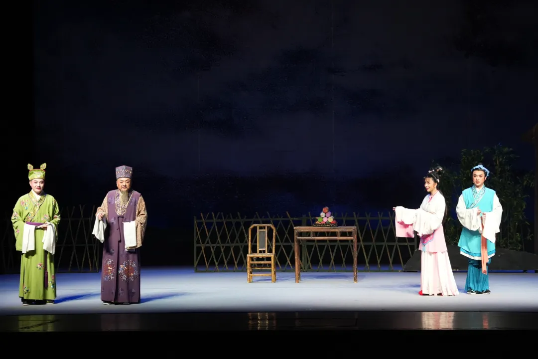 谢幕环节,两位主演返场表演了黄梅戏经典唱段“爱歌”,可观众仍觉不过瘾,“再来一个、再来一个”的呼声此起彼伏,此时我院拿出了提前精心准备的返场彩蛋——黄梅戏新编小戏《六尺巷》,收获了在场观众又一波热烈的掌声,为当晚的演出画上圆满句号。
