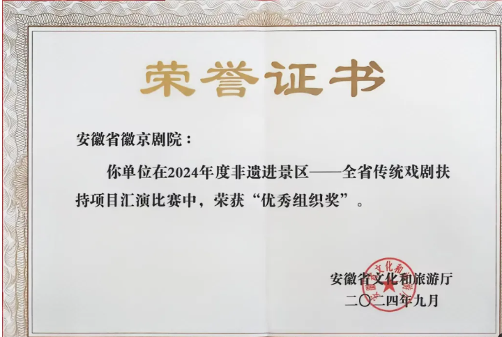 省徽京剧院摘得2024年度非遗进景区——全省传统戏剧扶持项目汇演比赛多项荣誉