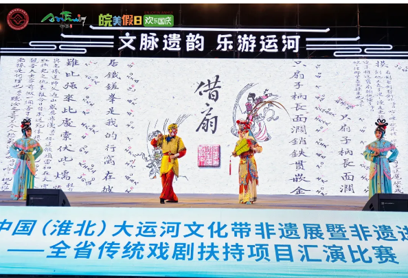 近日,由安徽省文化和旅游厅、淮北市人民政府共同主办的2024中国(淮北)大运河文化带非遗展暨非遗进景区——全省传统戏剧扶持项目汇演比赛在淮北市隋唐运河古镇圆满举办。