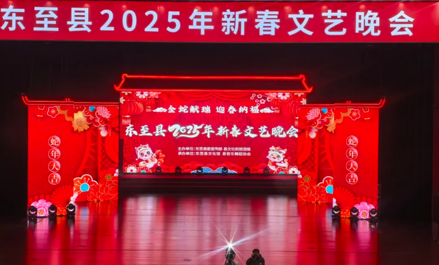 2月11日,东至县文化中心大剧院灯火辉煌,一场以“金蛇献瑞·迎春纳福”为主题的新春文艺晚会在这里盛大启幕。本次晚会由东至县委宣传部、县文化和旅游局联合主办,省歌舞剧院(省演出公司)作为重要艺术支持单位,倾情助力,为东至县父老乡亲带来了一场艺术盛宴。