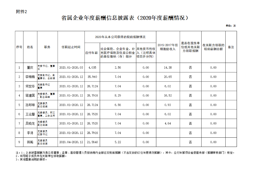 安徽演艺集团有限责任公司领导班子成员2020年度薪酬信息披露