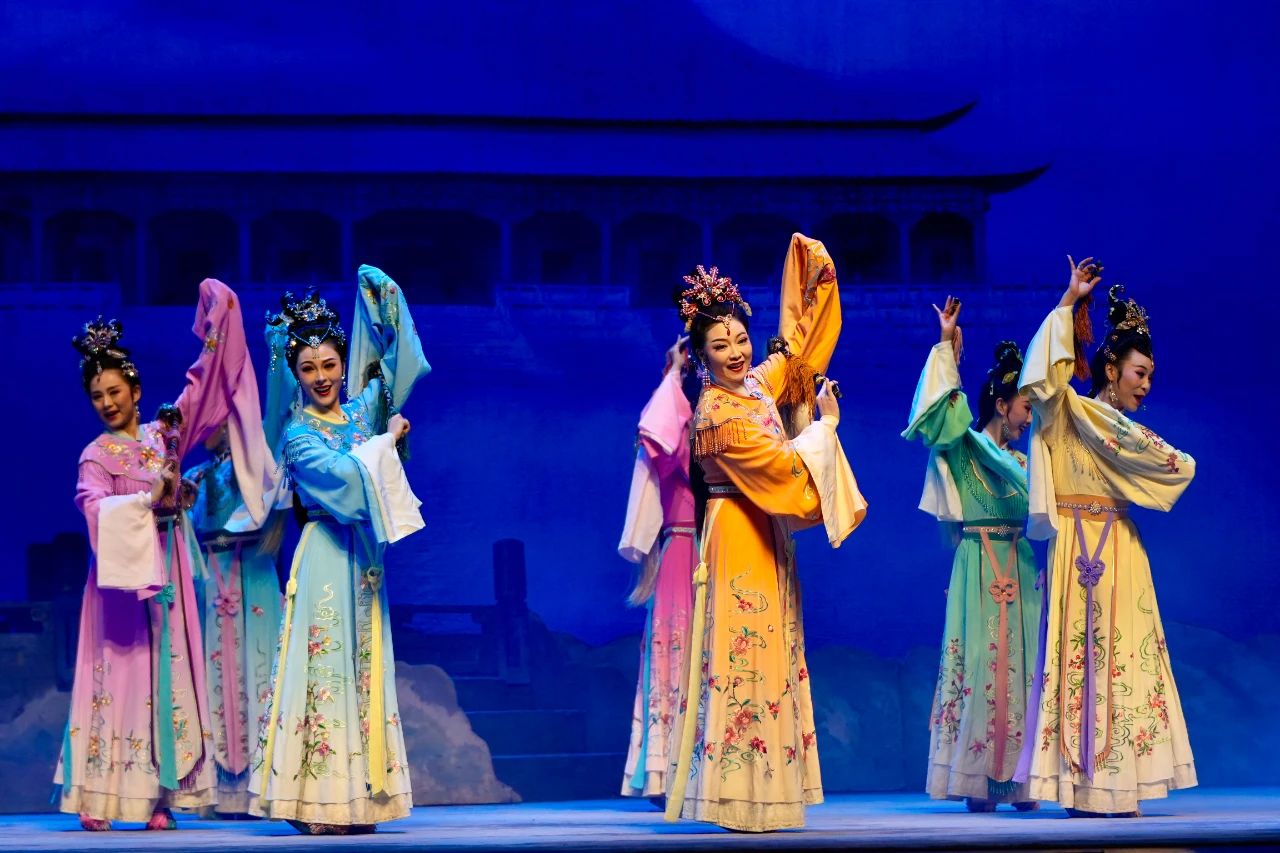 “树上的鸟儿成双对,绿水青山带笑颜……”悠扬动听的曲调响起,带领观众回味脍炙人口的动人故事:七仙女不顾天规私自下凡,槐荫树下“邂逅”董永结为伉俪,一夜之间织成十匹锦绢,助董永三年长工改为百日,满工路上二人憧憬美好生活,不料玉帝降旨令七仙女返回天宫,生生拆散了恩爱夫妻。