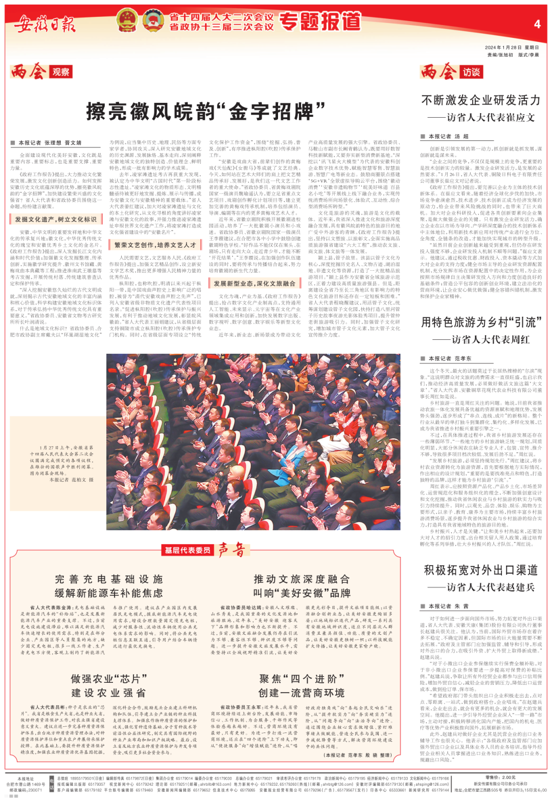 《政府工作报告》提出,大力推动文化繁荣发展,激发文化创新创造活力。如何发挥安徽历史文化底蕴深厚的优势,擦亮徽风皖韵的“金字招牌”,加快建设繁荣兴盛的文化强省?省人大代表和省政协委员围绕这一命题,纷纷建言献策。