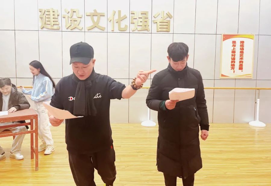经过认真细致的前期创作,12月1日,两个小戏分别建组,并即刻投入到紧张忙碌的排练当中,见缝插针、紧锣密鼓、加班加点地创作、排练。