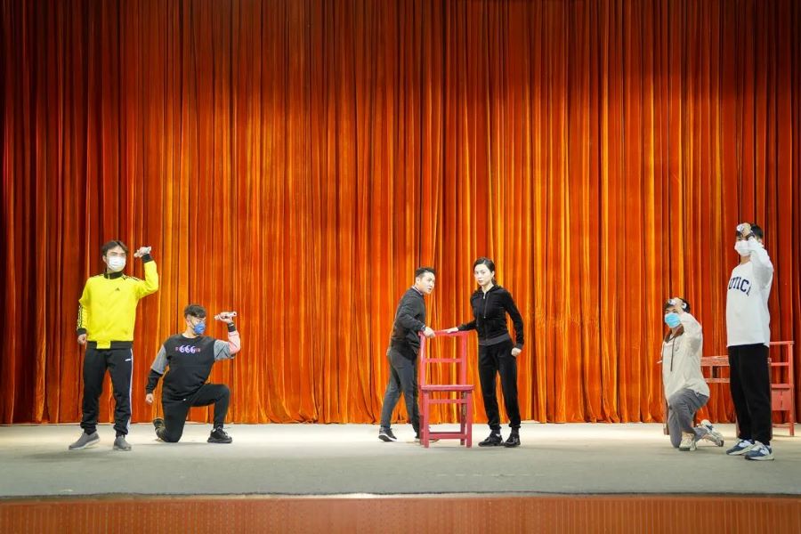 11月2日,在安徽省黄梅戏剧院,袁媛和同事正在排练新的剧目。