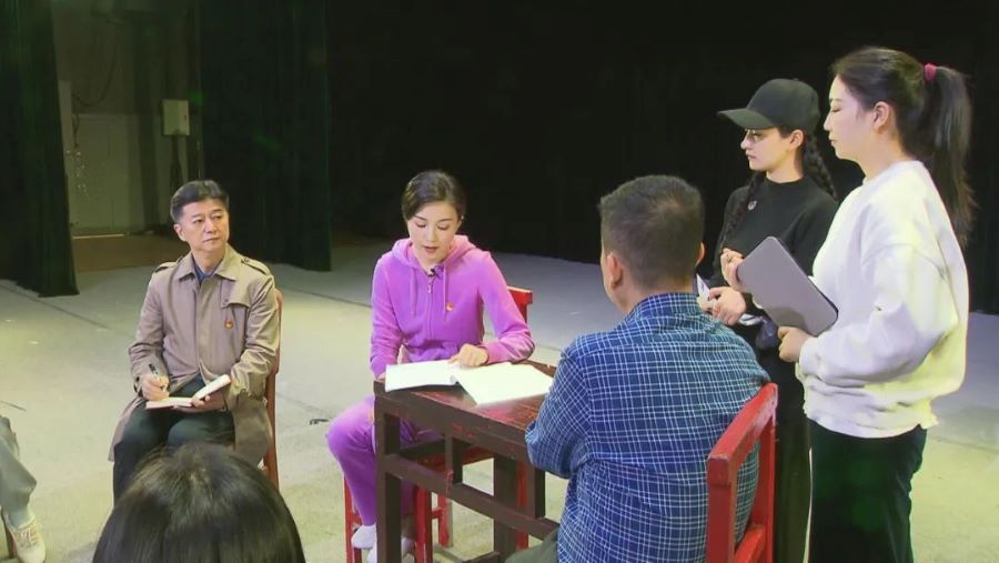 在安徽省黄梅戏剧院,二十大代表、安徽省黄梅戏剧院小梅花团副团长袁媛正在给同事们宣讲党的二十大精神。二十大报告中提出,要推出更多增强人民精神力量的优秀作品,这让现场的文艺工作者倍感振奋。现在剧团正在排演革命历史题材原创剧目,弘扬以伟大建党精神为源头的中国共产党人精神谱系。