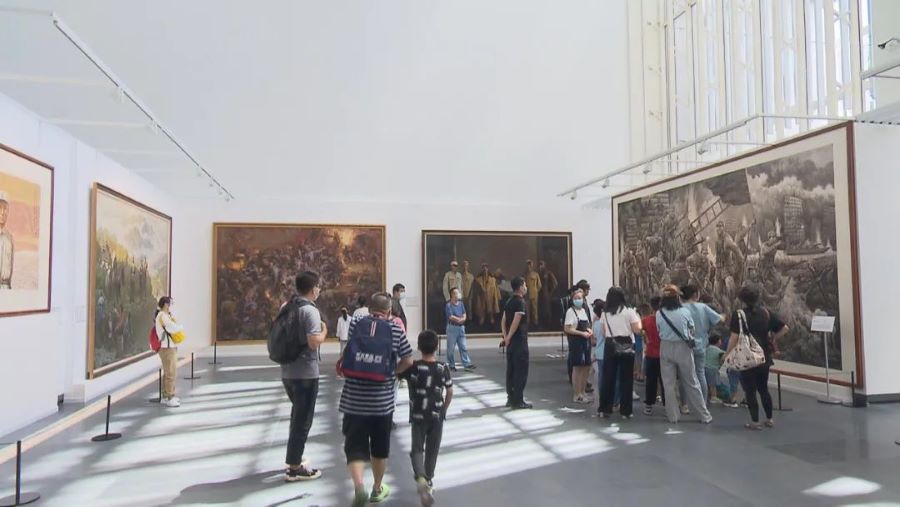 我现在是在安徽省美术馆,置身于一幅幅画作间,我感觉自己来到了艺术的殿堂,这里从5月下旬开馆至今,每天的参观人数已经达到了预约的上限,可谓是天天爆满。