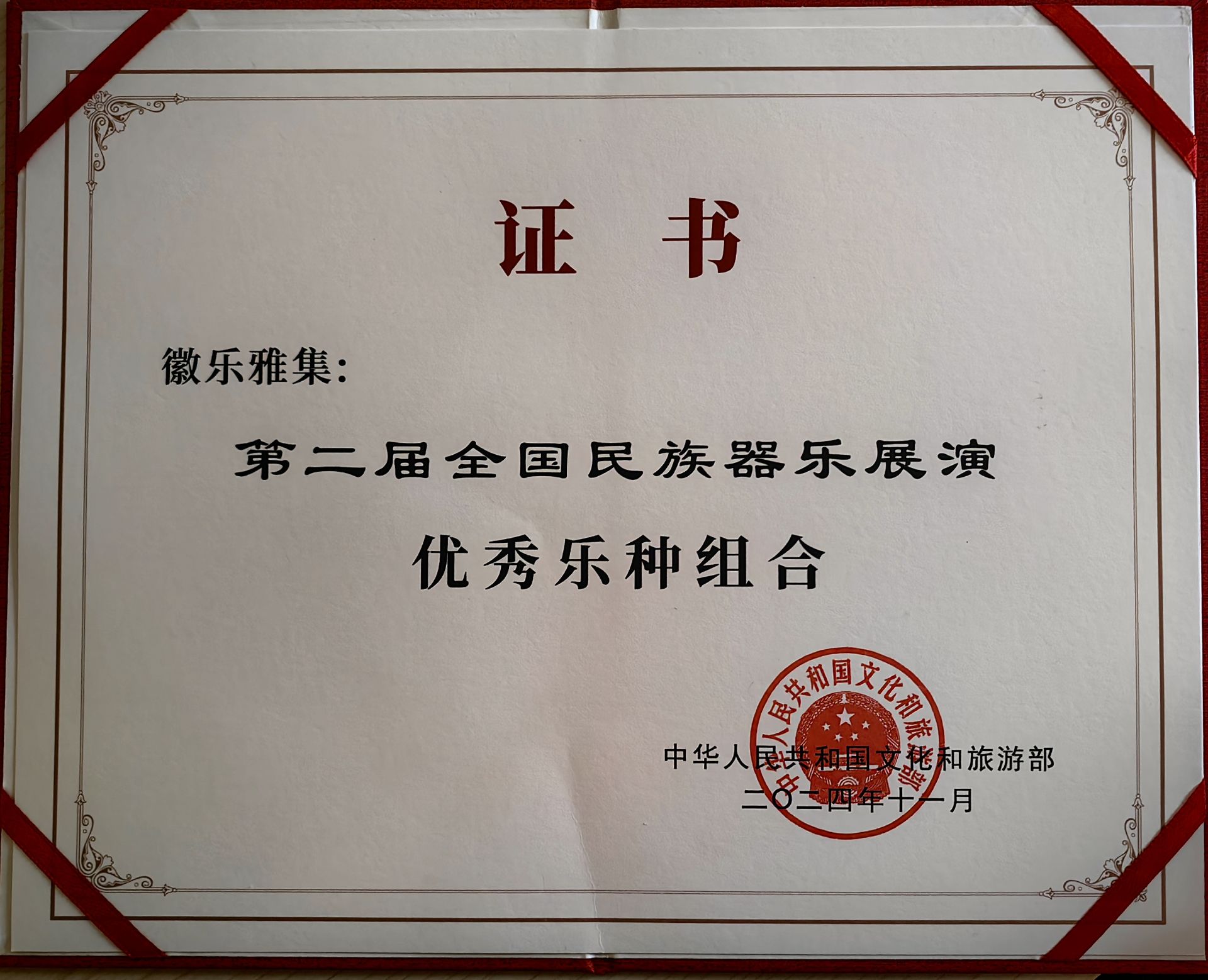 近日,由文化和旅游部、江苏省人民政府主办的第二届全国民族器乐展演在江苏无锡举行。由集团推荐、省文化和旅游厅报送,安徽省徽京剧院戏曲音乐中心创排的节目《徽乐雅集》精彩亮相本次展演,荣获本届全国民族器乐展演“优秀乐种组合”称号。