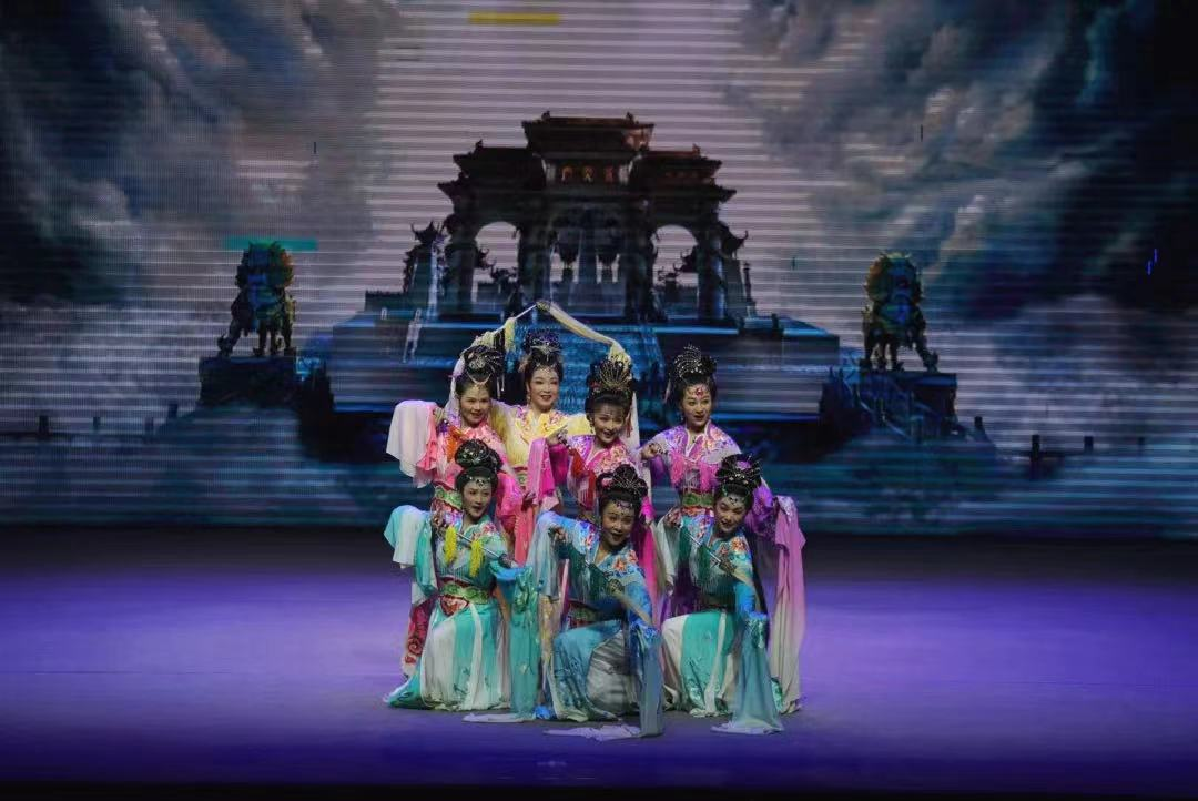 七仙女厌恶天宫凄清的岁月,于是不顾触犯天规只身奔向了人间。槐荫树下与董永“邂逅”,从同情到钟情,并最终结为伉俪。董永卖身傅员外家为长工,七女跟随他一同来到了傅家,并以一夜之间织成十匹锦绢而使三年长工改为了百日。满工路上,二人欢歌笑语,向往未来美好的生活。不料恰在此时,玉帝降旨,令七女回宫,生生拆散恩爱夫妻。临别时,七女给董永深情留言:“不怕天规重重活拆散,我与你天上人间心一条!”