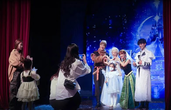 《冰雪女王之艾莎的雪域幻境》,带观众开启一场奇妙冒险,演出中,360度沉浸式实景暴风雪,雪花从头顶飘落,让观众置身晶莹剔透的冰雪王国。观演时,观众不仅能欣赏精彩剧情,还能与艾莎互动、雪宝、驯鹿趣味送礼环节,孩子们跟随艾莎公主一同吟唱魔法主题曲,解锁冰雪奥秘,挥舞魔法棒,参与加冕仪式,亲身体验这场童话盛宴!拥抱独属于自己的清凉童话时光。